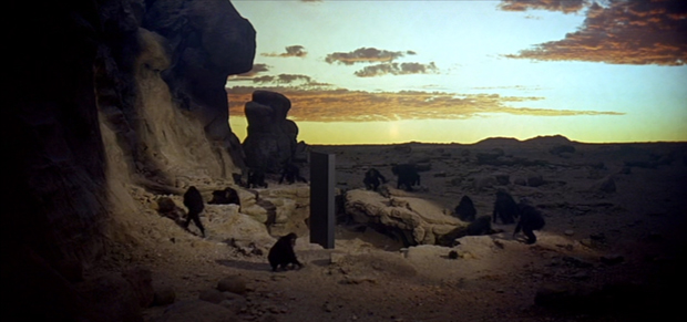 - La projection d'arrière-plan : À noter que dans la première séquence de 2001, c'est seulement l'arrière-plan qui est ainsi projeté, les acteurs qui interprètent les hominidés évoluant dans un décor minéral placé devant celui-ci.